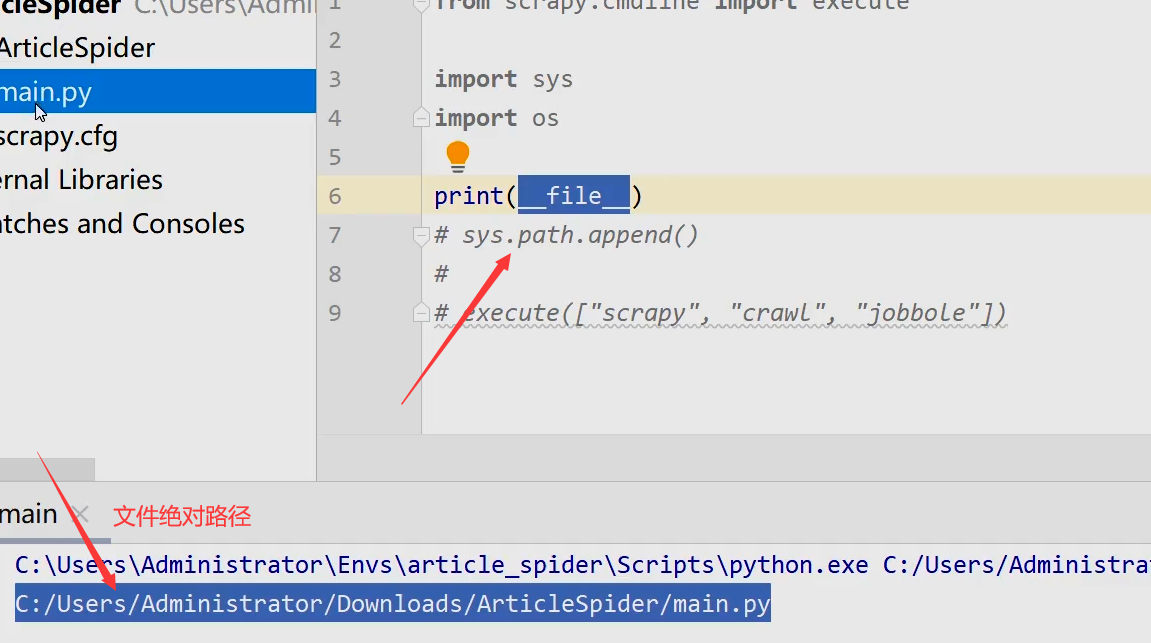 项目根目录新建main文件在pycharm中启动爬虫